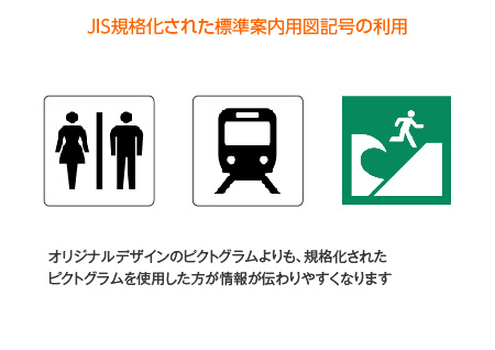 また文字による多言語表記だけでなく、直感的に理解しやすいピクトグラムを活用するなど、「言語に頼りすぎない」わかりやすい表現を心がけています。